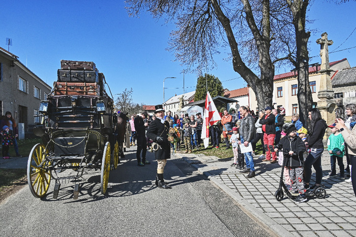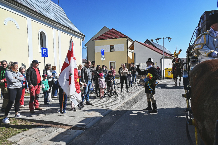 Do naší obce slavnostně přijel cestovní kočár tažený čtyřspřežím ušlechtilých koní, vezoucí urozenou společnost v čele s váženým cechmistrem kočárnickým a v doprovodu jezdců 1. Hulánského regimentu.